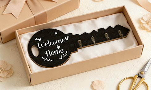 Alphynix 1 Stück schlüsselgeformter Wandhaken, „Willkommen Zuhause“ dekorativ, mit 4 Metallhaken, Eingangsbereich-Organizer für Schlüssel & kleine Artikel
