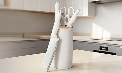 GOODA MasterChef Messerblock mit Kochmesser, Santokumesser, Universalmesser und Schere mit Soft-Touch-Griff